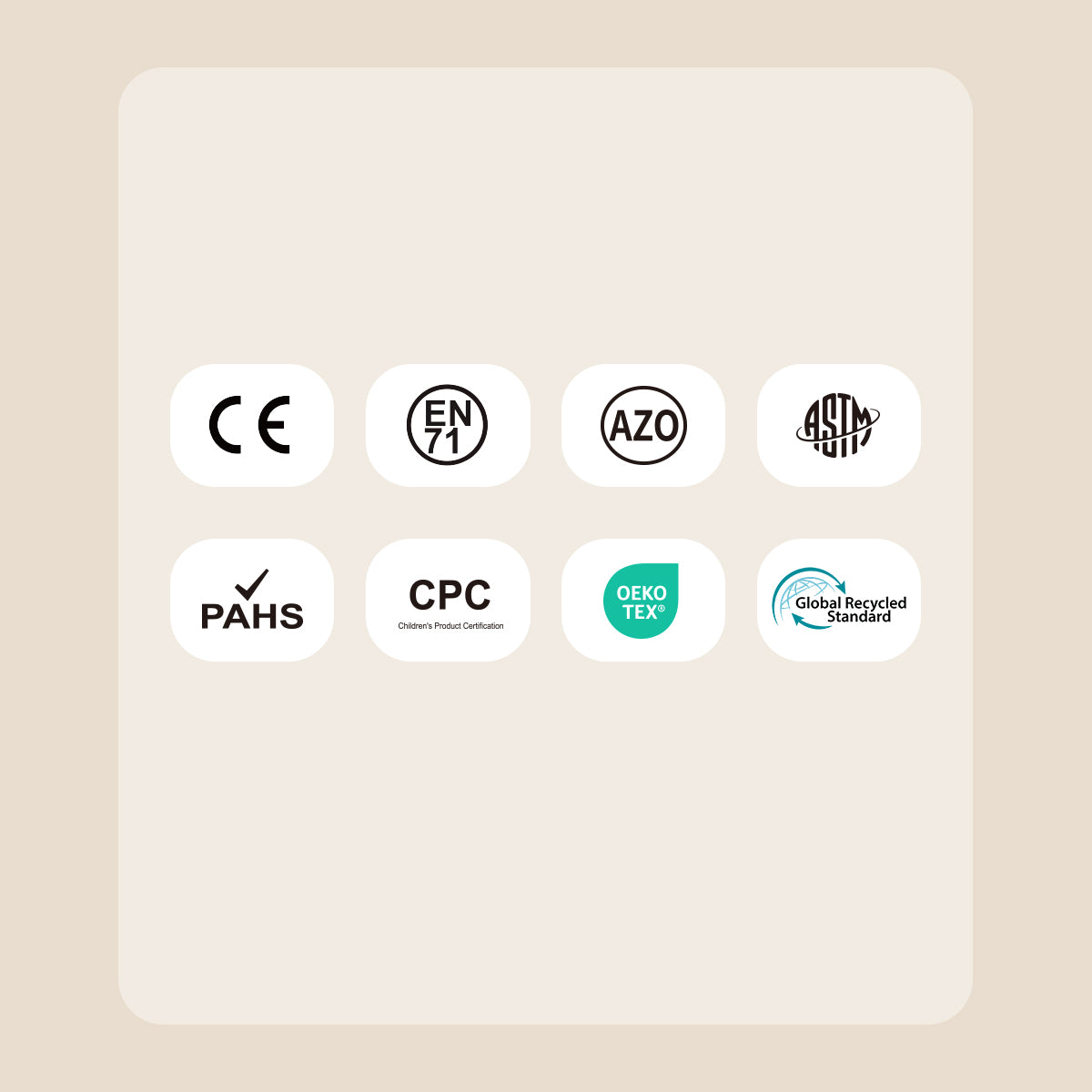 We choose materials that are kind to both skin and the planet. Our OEKOTEX certification guarantees your family’s comfort, free from harmful substances. Our GRS (Global Recycled Standard) certification means we give recycled materials a new life, reducing our footprint.