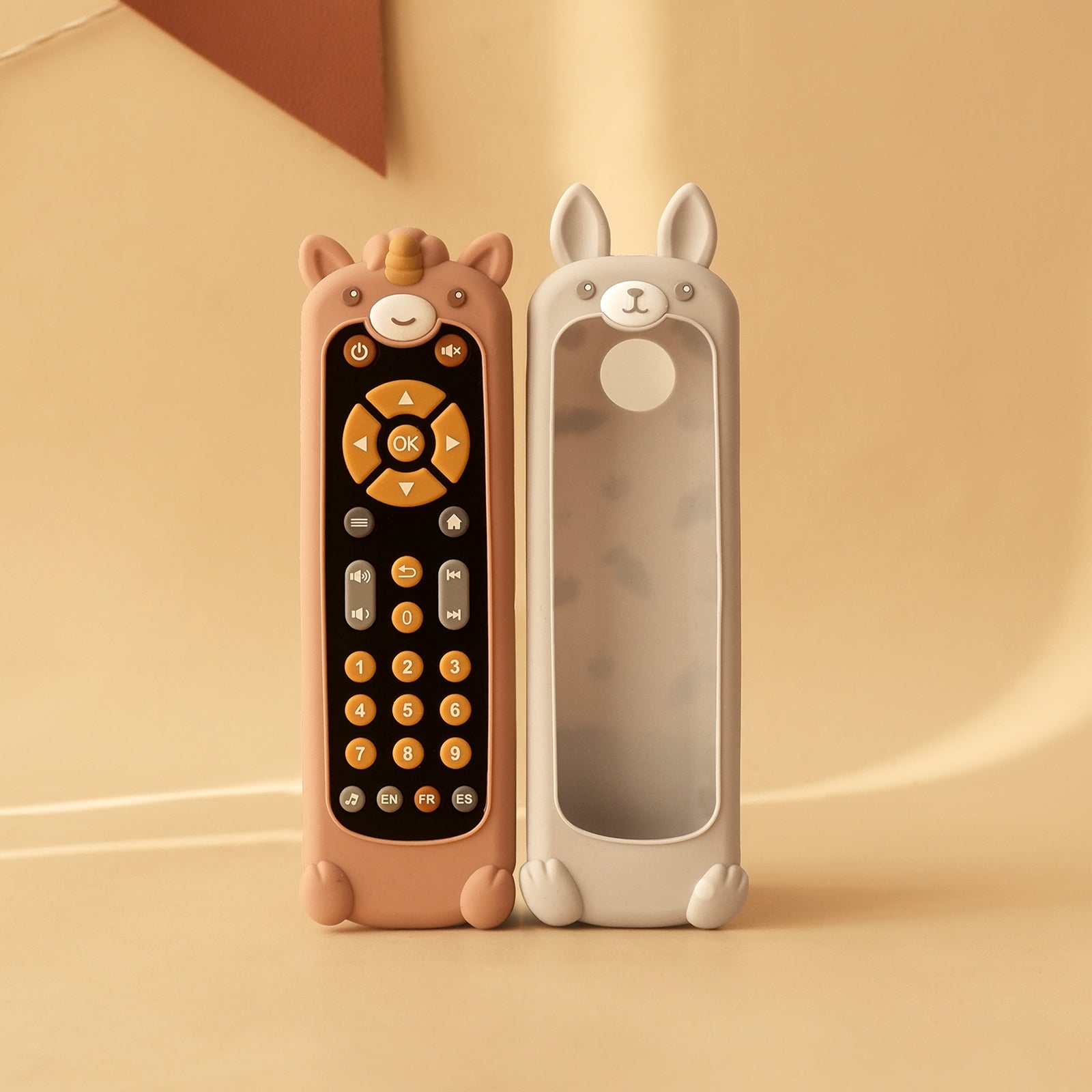 BPA-free silicone cover + rounded ABS plastic body. Chew-friendly textures withstand toddler grip-and-bite adventures.